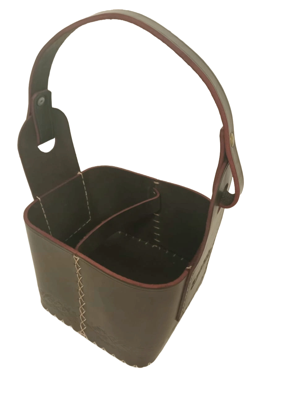 Canasta Matera de Cuero Vacuno con Costura Artesanal